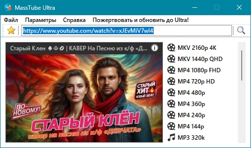 MassTube Ultra — удобная программа для быстрого и лёгкого скачивания видео с YouTube за пару кликов. Достаточно в строку поиска вставить ссылку на интересующий Вас видеоролик и нажать поиск, после чего программа предоставит список форматов и разрешений, в которых можно быстро скачать данный клип.