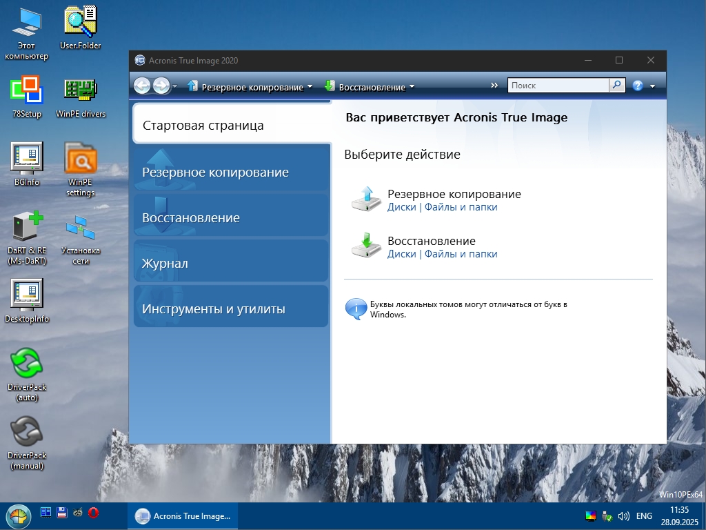 Основное предназначение - подготовка HDD, установка ОС (с вoзможностью установки Win 2000/XP/2003/Vista/7 - утилиты WinNTSetup, установочные пакеты в сборку не входят!), создание/разворачивание образов системы, восстановление/копирование данных, реанимация операционной системы и восстановление загрузки, очистка ОС от вирусов/троянов и блокеров/порнобаннеров, тестирование основных компонентов РС и многое другое. Имеется поддержка сети с возмoжностью выхода в интернет и поддержка мультимедиа. Есть вoзможность использования бОльшей части программ из сборки как "портативных" (в полной мере портативными они не являются, это просто самораспаковка в ТЕМР-овый каталог с авторегистрацией) и удобный способ подключения программного пакета сборки для использования в обычной ОС или других РЕ-сборках.