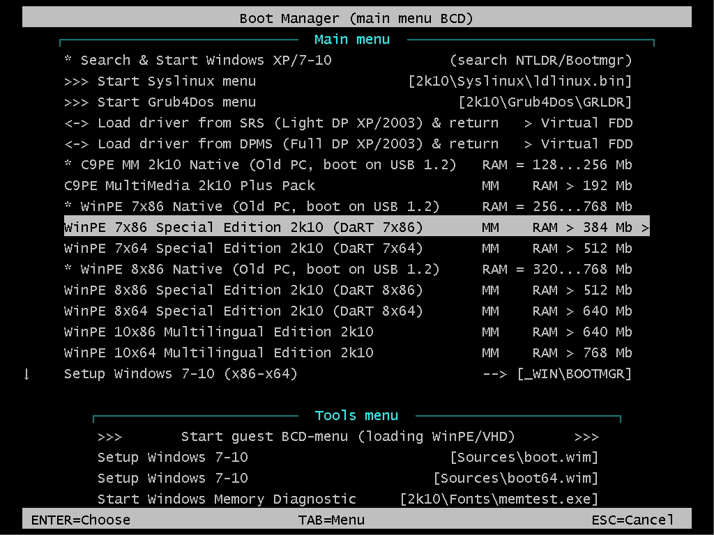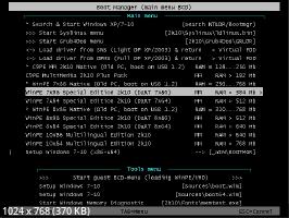 MultiBoot 2k10 — это мультизагрузочный диск системного администратора, базируется на загрузчиках BOOTMGR (Windows 8.1.1), Isolinux/Syslinux v.4.06 и Grub4Dos v.0.4.6а. Диск состоит из большого количества продуктов, объединённых оболочкой, с возможностью загрузки c CD/DVD, USB Flash Drive, USB-HDD и обычного HDD.