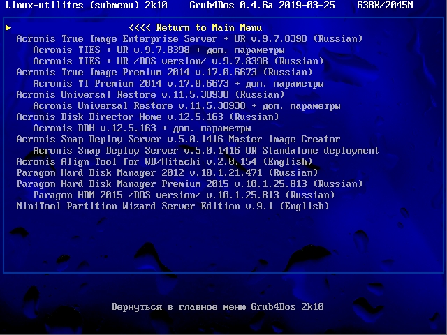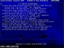 USB-driver PLOP v.5.0.11 C9PE Plus Pack (@conty9) 2k10 WinPE 7x86 Live (@Xemom1) Special Edition 2k10 WinPE 7x64 Live (@Xemom1) Special Edition 2k10 WinPE 8x86 Live (@Xemom1) Special Edition 2k10 WinPE 8x64 Live (@Xemom1) Special Edition 2k10 WinPE 10x86 Live (@Xemom1) Multilingual Edition 2k10 WinPE 10x64 Live (@Xemom1) Multilingual Edition 2k10 Parted Magic 2017.03.14 /Linux Live-CD/ Linux-версия Acronis DDH v.12.5.163 (rus) Linux-версия Acronis TIES v.9.7.8398 (rus) Linux-версия Acronis TI Premium 2014 v.17.0.6673 (rus) Linux-версия Acronis Universal Restore v.11.5.38938 (rus) Linux-версия Acronis Snap Deploy v.5.0.1416 (rus) Linux-версия Acronis Align Tool for WD/Hitachi v.2.0.154 (eng) Linux-версия Paragon HDM 12 v.10.1.21.471 (rus) Linux-версия Paragon HDM 15 v.10.1.25.813 (rus) Linux-версия MiniTool Partition Wizard Server Edition v.9.1 (eng) Linux-версия TeraByte Image for Linux v.3.39 (eng) DOS-версия Acronis TIES v.9.7.8398 (rus) DOS-версия Paragon HDM 15 v.10.1.25.813 (rus) Большой набор различных DOS-утилит, и много чего ещё.