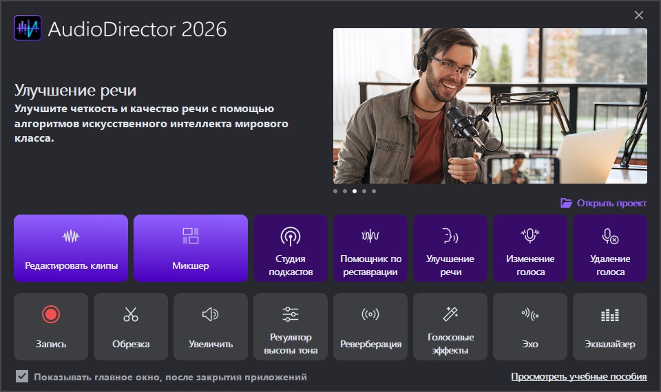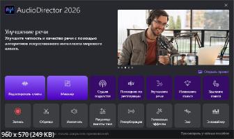 CyberLink AudioDirector Ultra 2026 — это мощное приложение для обработки музыки. AudioDirector позволяет создавать собственные саундтреки с помощью многодорожечной записи, использовать средства микширования, автоматически удалять шумы и помехи и выполнять восстановление аудио. Благодаря возможности воспроизведения видео параллельно с редактированием звука пользователи AudioDirector могут синхронизировать корректировки аудио с картинкой. AudioDirector предлагает поддержку широкого ряда видео- и аудиоформатов, а также многоканального звука.
