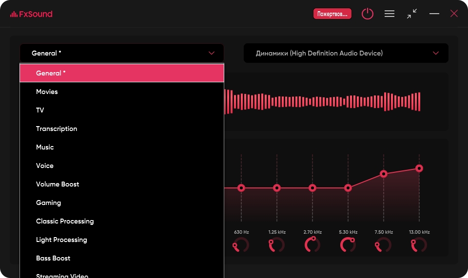 FxSound Pro — приложение, которое позволяет существенно улучшить качество звука в различных приложениях и онлайн сервисах, при помощи изменения в режиме реального времени различных параметров аудиосигнала звуковой карты ПК. К примеру, с помощью данной программы, можно улучшить качество звучания любимых треков в различных медиапроигрывателях, раскрыть глубину звучания окружающего мира в разнообразных играх, насладиться звучанием любимых ТВ-программ и фильмов, и в целом улучшает четкость звука.