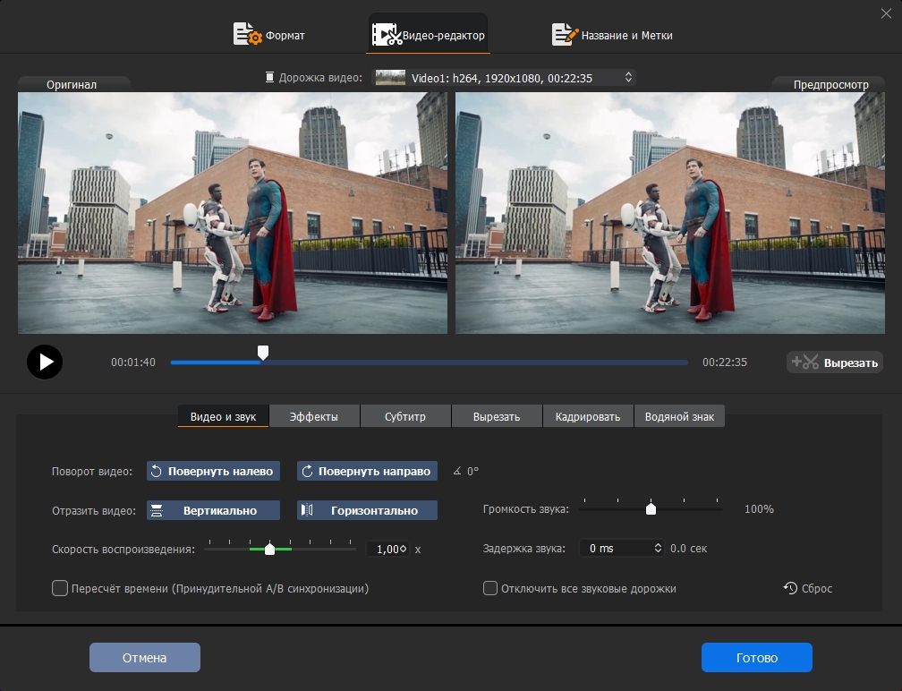 Больше полезных функций, которые сделают ваши видео потрясающими • Контроль скорости • Повернуть/перевернуть • Удалить рыбий глаз • Снизить уровень шума • Сделать GIF/снимок • Улучшение звука