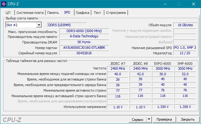 Память • Частота и тайминги. • Количество каналов памяти. • Спецификации модулей, записанные в SPD (Схема Последовательного Детектирования): производитель, серийный номер, таблица таймингов.