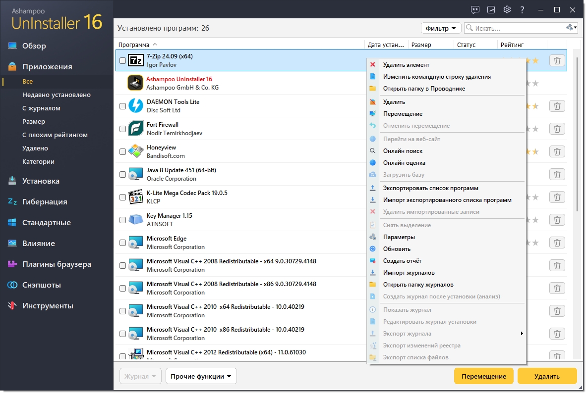Ashampoo UnInstaller 16 — вы можете устанавливать, тестировать и удалять программы, не оставляя следов, что дает Вам полный контроль над тем, что остается на Вашем ПК! Программа тщательно отслеживает и регистрирует каждую установку, а журналирование установки — это идеальный метод для полного удаления.