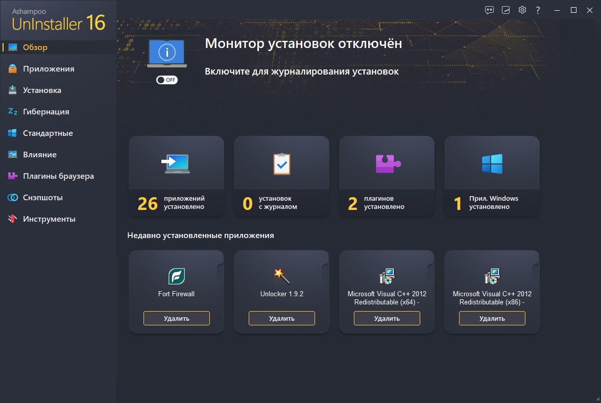 Удаляет ненужные программы без следа! Ashampoo UnInstaller 16 предоставляет комплексное решение для всех задач по удалению в одном надежном программном пакете. Благодаря возможностям цифрового анализа Вы можете удалять даже старые поддерживаемые программы, не оставляя следов, независимо от того, отслеживалась ли их установка. Усовершенствованные модули очистки и новый Registry Optimizer обеспечивают заметное повышение скорости и чистоты работы для Вашего ПК. Кроме того, программа включает в себя такой мощный инструмент, как Crash Analyzer, который позволяет получить представление о системных проблемах и помогает в устранении неполадок. Все эти функции интегрированы в более быструю, стабильную и современную версию!